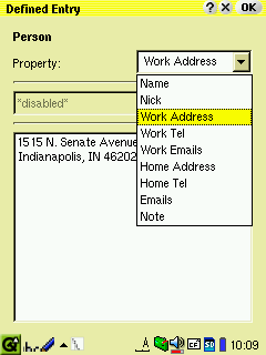 Setting up a new entry goes as follows - you choose at what level you want to add a note, at the main level or as a child to another level. The note name is entered, and then you pick the note type. There are a number of predetermined note types and if you wish you can add your own customized types using Options from the main menu. In this example I've chosen the "Person" type, and then entered the appropriate information - name, telephone number, e-mail address, address, and a note.
