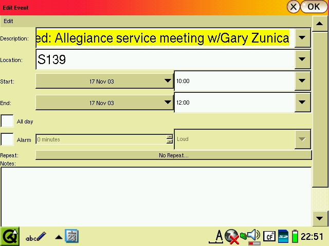 The following are screen captures of the daily view - "time' view and list view, then an individual appointment, and editing an appointment.